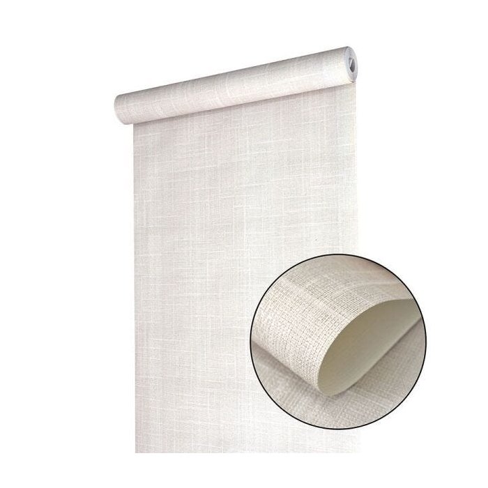 PAPEL DE PAREDE VINÍLICO IMPORTADO TEXTURA LINHO COM BRILHO - BRANCO PEROLADO
