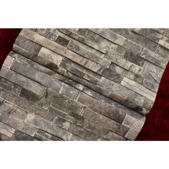 Papel de Parede Vinílico Lavável Textura Pedra Escura Filete