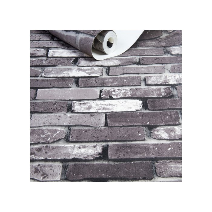 Papel de Parede Vinilico Lavavel Tijolo Cinza Degrade 3d 10m