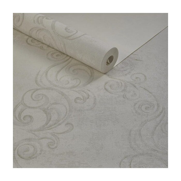 Papel de Parede Vinílico Off White Arabesco Bege com Glitter