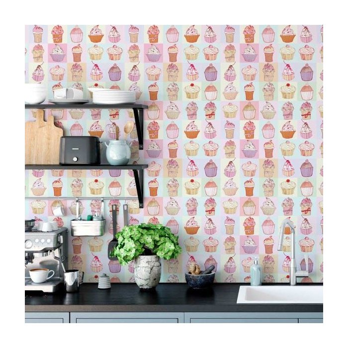 Papel Parede Adesivo Cupcake Doce Confeitaria Cozinha 10m