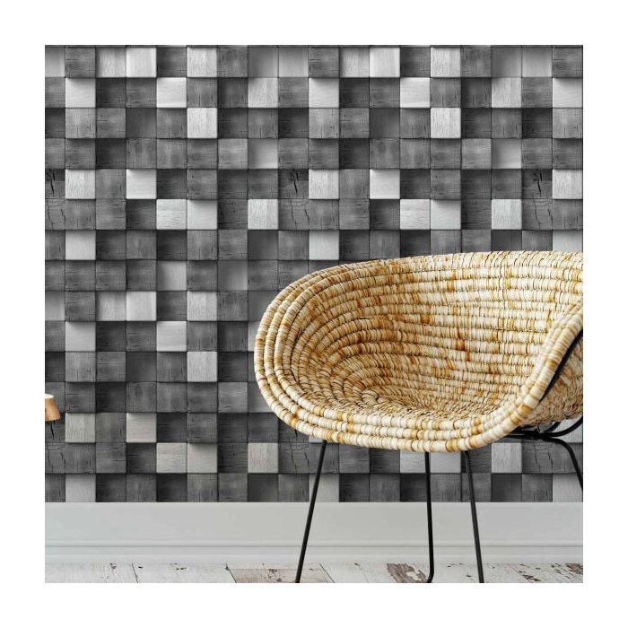 Papel Parede Adesivo Preto Bloco Madeira Dormente Sala 3m