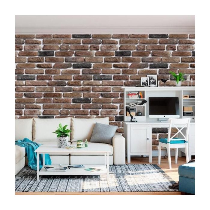 Papel Parede Tijolos Pó De Mico Vermelhos E Pretos Adesivo