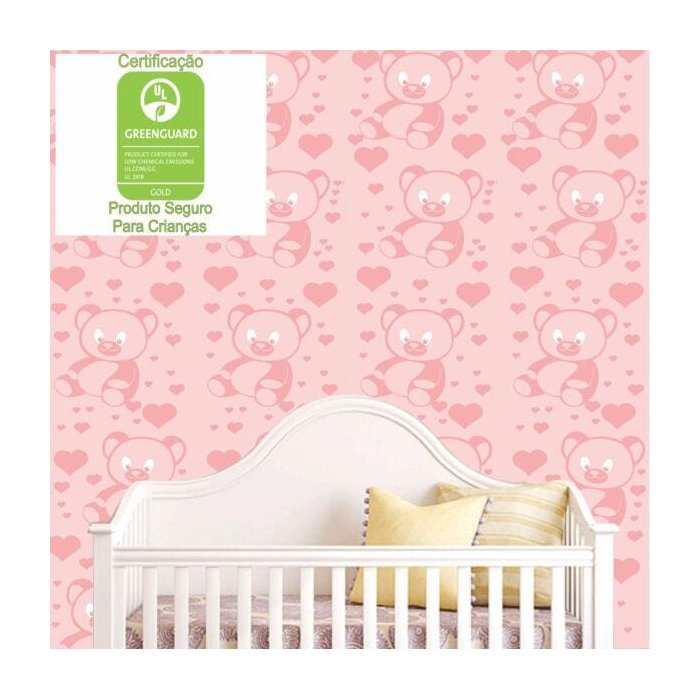 Papel Parede Ursa Rosa Lavável Adesivo Anti Alérgico Rosa