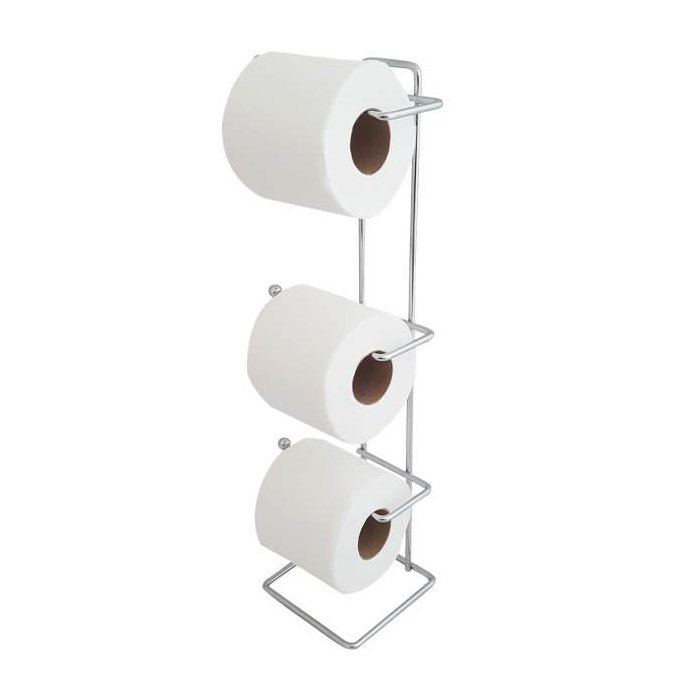 Este porta papel higiênico é desenvolvido em aço com excelente acabamento. O suporte possui design elegante sendo resistente a corrosão e tendo capacidade de até três rolos de papel higiênico. A papeleira de chão para banheiro é facilidade no seu dia a dia.