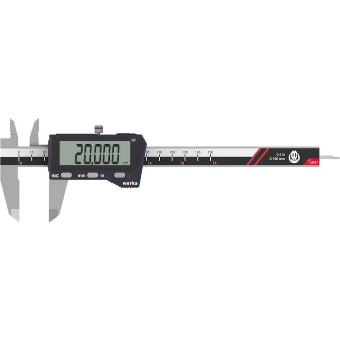 Paquímetro digital 0~150mm/0~6'' Res. 0.001mm/0.00005'' IP67 Bluetooth Werka 2230-150W