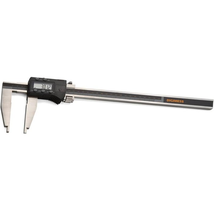 Paquímetro Digital Para Serviços Pesados - 600mm/24'(250mm) - Graduação 0,01mm/.0005' - DIGIMESS O Paquímetro é um instrumento de medição utilizado para medir com precisão as dimensões lineares internas/externas e de profundidade de uma peça. Trata-se de uma régua graduada, com encosto fixo, sobre a qual desliza um cursor. ESPECIFICAÇÕES- Fabricados em aço inoxidável temperado;
