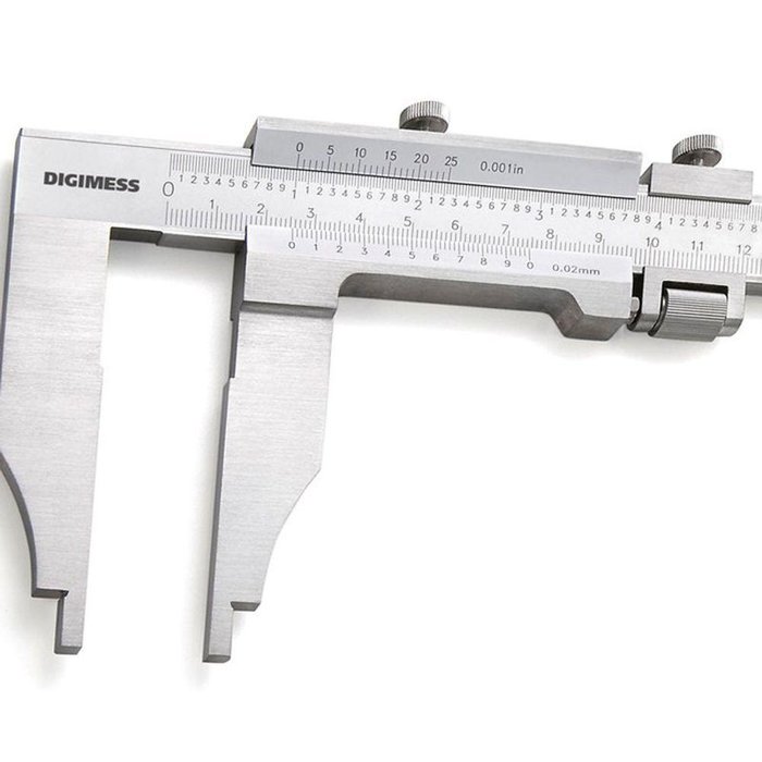 Paquímetro Para Serviço Pesado Com Bicos Normais - Cap. 600mm/24 - Prof. Do Bico 100 mm - Graduação 0,02mm/.001 - DIGIMESS O Paquímetro é um instrumento de medição utilizado para medir com precisão as dimensões lineares internas/externas e de profundidade de uma peça. Trata-se de uma régua graduada, com encosto fixo, sobre a qual desliza um cursor. ESPECIFICAÇÕES: - Fabricados em aço inoxidável temperado;