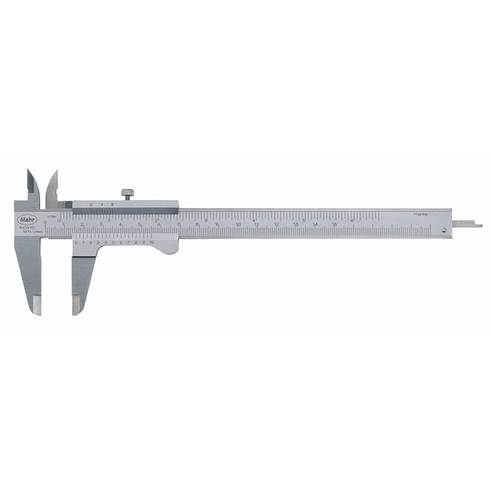 O Paquímetro Universal 150mm/6" x 0,05mm/ 1/128" Ref. 16 FN Mahr 4100400 possui um acabamento cromado em aço inoxidável que possibilita uma maior resistência. Acompanha estojo e tabela de roscas.