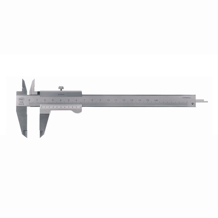 Paquímetro analógico 16 GN com ajuste fino curso 200x0,02 mm acabamento cromado aço inoxidável incluso estojo e tabela de roscas Mahr 4100671