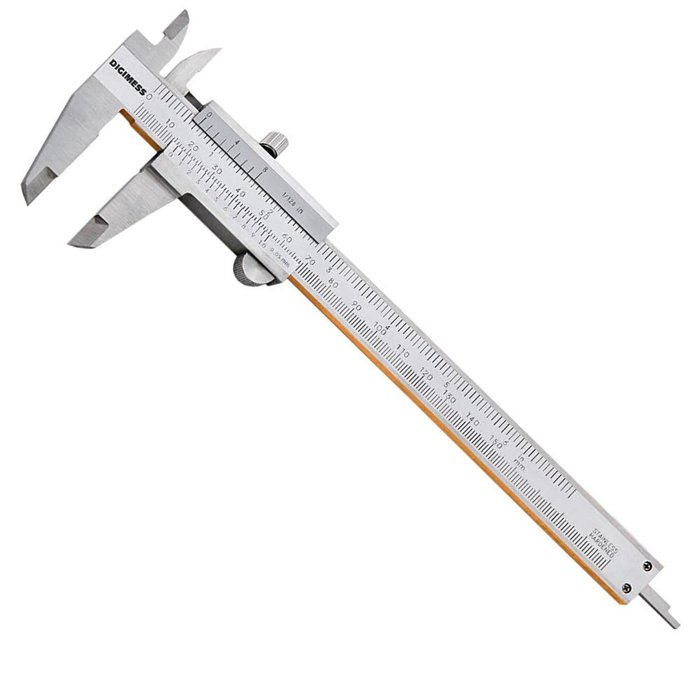 O Paquímetro é um instrumento de medição utilizado para medir com precisão as dimensões lineares internas/externas e de profundidade de uma peça. Trata-se de uma régua graduada, com encosto fixo, sobre a qual desliza um cursor. ESPECIFICAÇÕES- Guias revestidas com titânio;