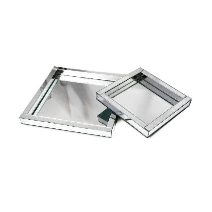 Par Bandejas Espelhada Vidro Espelho Quadrada 20x20 e 15x15