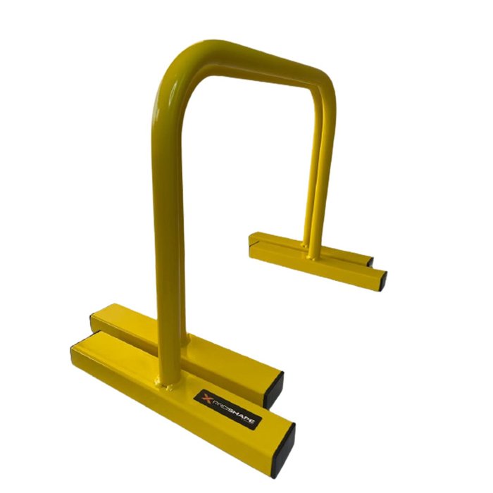 Representamos a XPROSHAPE no Brasil!Par de Parallettes XPROSHAPE Cor Das Barras : AmareloDimensões:Altura: 40 cmComprimento: 50 cmBase/Largura: 30 cmPeso Suportado: 150 kg de CargaConteúdo da Embalagem:1 Par de ParallettesCaracterísticas:Pintura eletrostática que pode ficar ao sol e chuva que não enferruja com solda mig a mais forte. Base de contato com o chão em E.V.A garantindo amortecimento nos exercícios e aderência e base de 50x30 cm por maior segurança.Treine em casa e evolua rapidamente! Ideal para praticantes de Musculação, calistenia, Freestyle, Street Workout, Treinamento Funcional, Pilates, Academia, Yoga, Ginastica e entre outros!