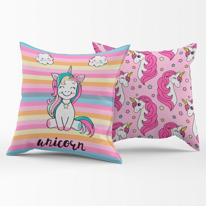 Par de Capas de Almofadas Estampadas Unicórnio Listrado Pink 45cm X 45cm para Quarto