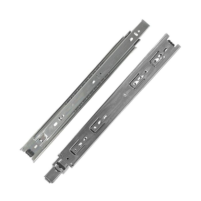 Pesadas: Par de Corrediça telescópica Reforçadas pesadas são indicadas para gavetas de cozinhas, closets, quartos, banheiros, lavanderias, prateleiras retráteis/extensíveis, bases de teclado e mobiliário em geral, um par por gaveta. Suporta ate 40kg