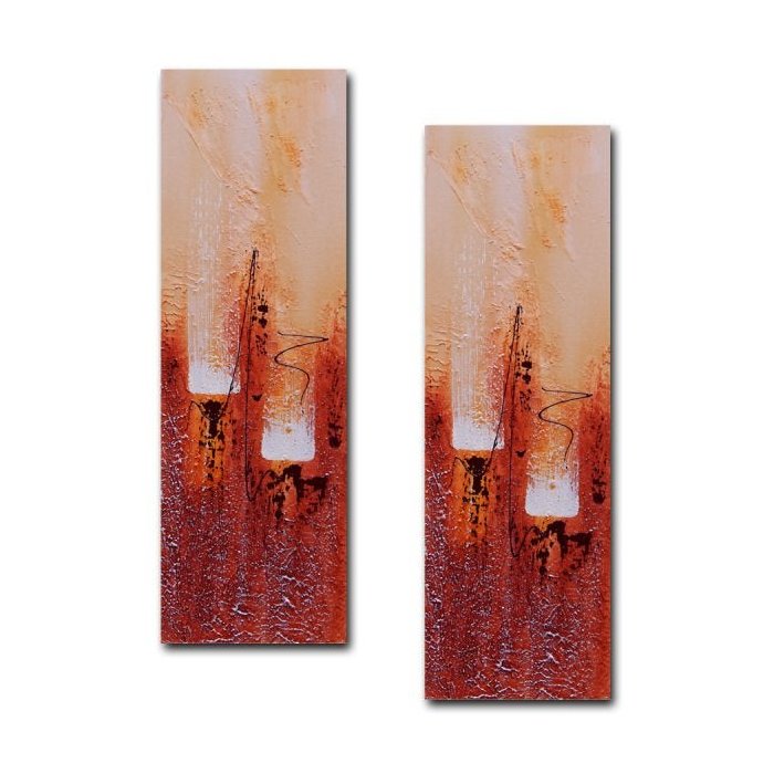 Par de Quadros Tela Pintura Abstrato 20x60cm