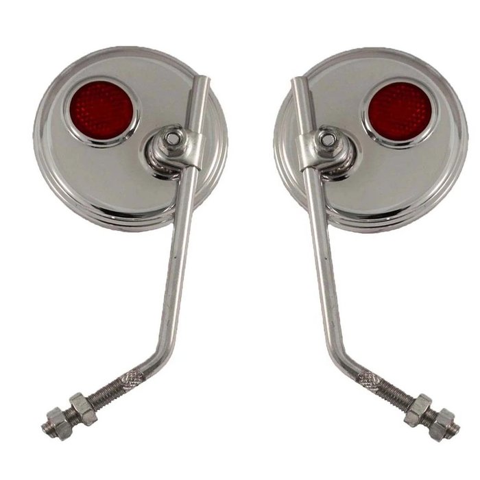 Par Espelho Retrovisor Bike Redondo Retrô Cromado C Refletor Tbg Cromado