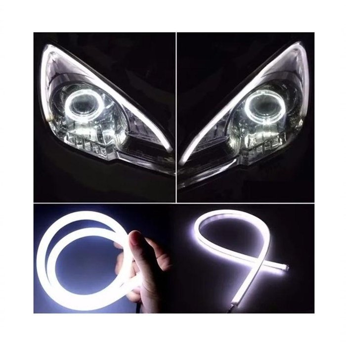 Par Fita Barra Led Neon 12v Para Farol 60cm Branca