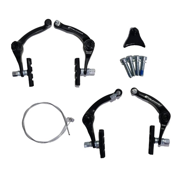 Par de Freio U-Brake em Alumínio da Marca Veloforce, Dianteiro e Traseiro. Ele vem na cor preta sendo discreto e muito eficiente. Suave, com um toque seguro e um design clean e elegante. Pode ser instalado apenas em bicicletas com esse tipo de freio modelo específico, mais comum em BMX. Não serve em bicicletas que usam freio v-brake. Acompanha sapatas de freio. Vem completo para os dois freios dianteiro e traseiro. Acompanham os parafusos.