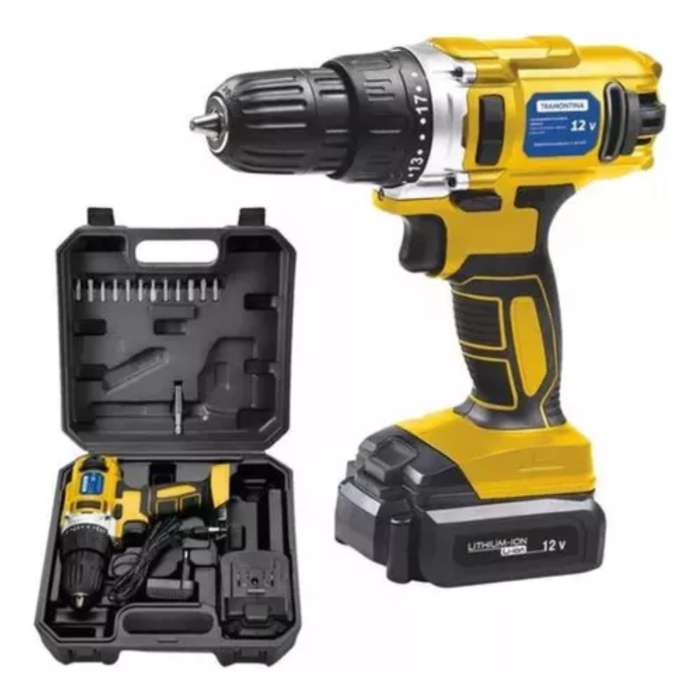 A parafusadeira/furadeira 12 V Tramontina à bateria 16 peças é a escolha ideal para quem busca uma ferramenta versátil e completa para suas tarefas. Desenvolvida para agregar em seu trabalho, ela serve tanto para furar, quanto para parafusar superfícies. Sua bateria possui carga completa de 05 horas e pode ser recarregada de maneira muito fácil, através do seu carregador bivolt. A ferramenta funciona em velocidade variável de 0 a 900 repetições por minuto e possui LED frontal que ilumina e facilita a visualização da área de trabalho. Seu manuseio é fácil, firme e confortável, pois conta com empunhadura ergonômica e emborrachada. Além de todas essas características, ela ainda conta com maleta e acessórios para utilização, o que deixa seu trabalho muito mais prático e funcional!Informações técnicas:Design moderno e robusto. Empunhadura ergonômica e emborrachada. Bateria de Íons de lítio de alta capacidade 1300 mAh / 1,3 Ah que proporciona ao usuário alto desempenho e produtividade. Bateria de Íons de Lítio com tecnologia especial sem efeito memória. Podem ser recarregadas a qualquer momento sem danificar as células. Bateria de carga estável com baixa perda de capacidade e rendimento durante a utilização. Carregador bi-volt proporcionando ao usuário maior flexibilidade no carregamento da bateria. Mandril com sistema de aperto rápido que dispensa a utilização de chaves. Mandril 3/8" de aperto rápido. 19 posições de torque + 1 perfuração. Interruptor com velocidade variável, reversível e função trava. Motor velocidade variável: 0-900 min-1 - rpm. Torque máximo: 15 N.m. Carregador bi-volt (127-220 V). Tempo para carga completa: 5 horas. Bateria de íons de lítio de alta capacidade 1300 mAh - 12 V. LED frontal para iluminação da área de trabalho. LEDS laterais para indicação do nível da bateria. Acompanha: maleta para transporte; carregador bi-volt; adaptador de bits 55 mm; 4 bits ponta chata 3, 4, 5, e 6 mm; 3 bits ponta cruzada PH1, PH2 e PH3; 5 bits trafix T07, T10, T15, T20 e T25 e manual de instruções.Recomendações de uso:Sempre utilizar óculos de segurança para proteger os olhos. Utilizar luvas para proteger as mãos. Manter a ferramenta fora do alcance de crianças. Nunca carregar as baterias em temperaturas superiores a 40°C e inferiores a 0°C. Recomenda-se consultar o manual de instruções para mais informações. Armazene em local limpo e seco. Respeite sua cidade e o meio ambiente, para descarte dos produtos e embalagens, siga as orientações de reciclagem vigentes.
