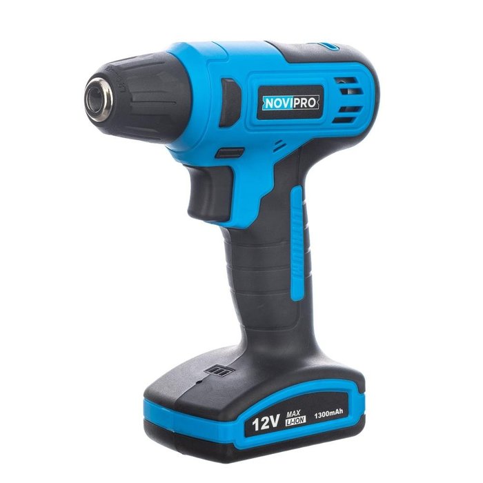 Parafusadeira e furadeira s/ imp c/bateria de lítio e acess 12V Biv Novipro Azul e Preto