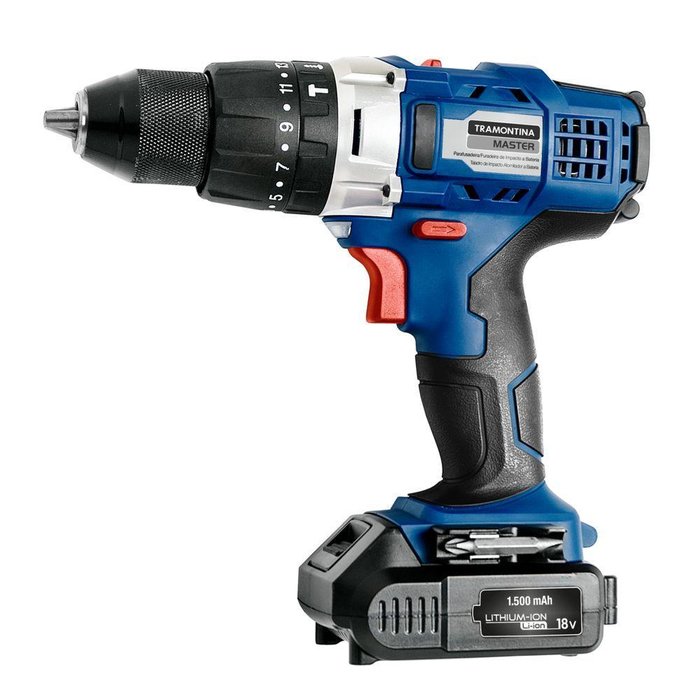 Parafusadeira/Furadeira 18 V Tramontina para Uso Profissional a Bateria Íons de Lítio com Velocidade Variável Sistema de Reversão e Maleta
