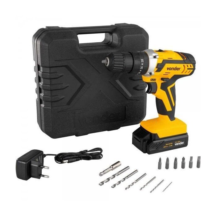 Acompanha acessórios encaixados perfeitamente na maleta, conferindo organização, praticidade e maior vida útil dos acessórios. Possui regulagem para 18 posições de torque e velocidade variável (2 velocidades). Contém 3 funções de operação: parafusadeira, furadeira sem impacto e furadeira com impacto. Possui LED para melhor visibilidade do local de trabalho, indicador de carga da bateria, cabo com revestimento emborrachado proporcionando maior conforto ao operador, bateria de íons de lítio que confere alta eficiência de operação, além de fonte de alimentação bivolt automática com tensão de entrada de 100 V~ - 240 V~.