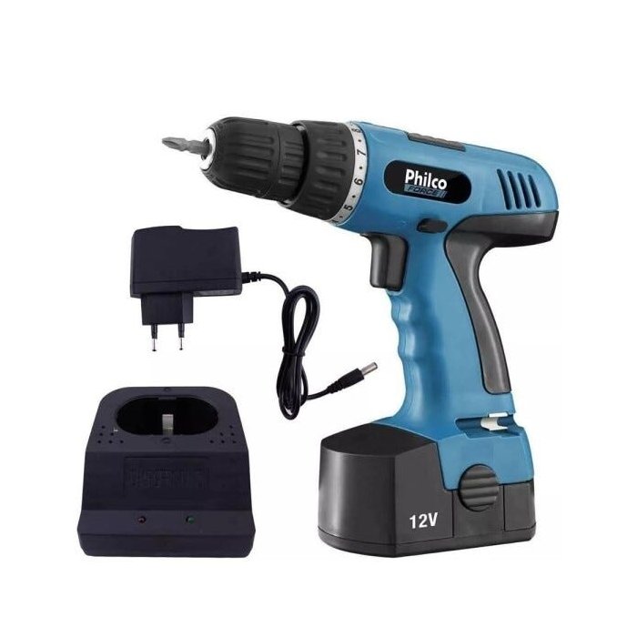 Parafusadeira Furadeira Bateria 12v Philco Bivolt Com Maleta