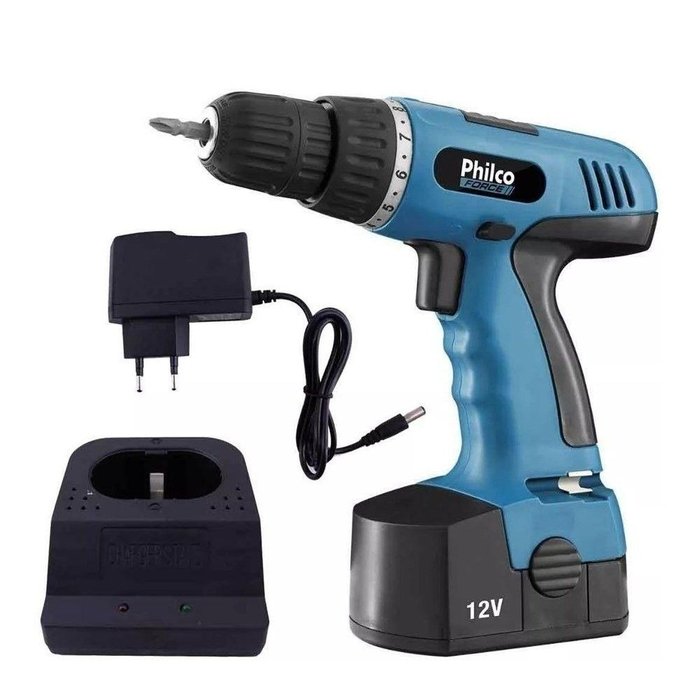 Parafusadeira Furadeira Bateria 12v Philco Bivolt com Maleta Azul
