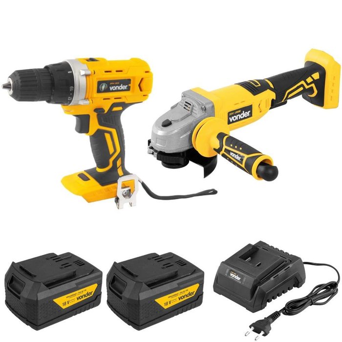 Parafusadeira Furadeira com Esmerilhadeira 2 Baterias e Carregador Vonder