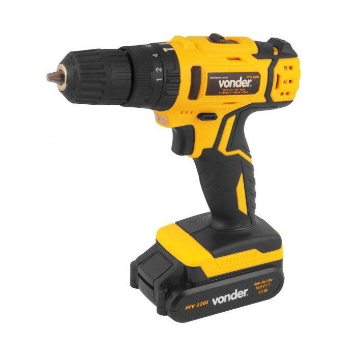 Parafusadeira/furadeira com impacto a bateria 12 V carregador bivolt automático PFV 120I Vonder