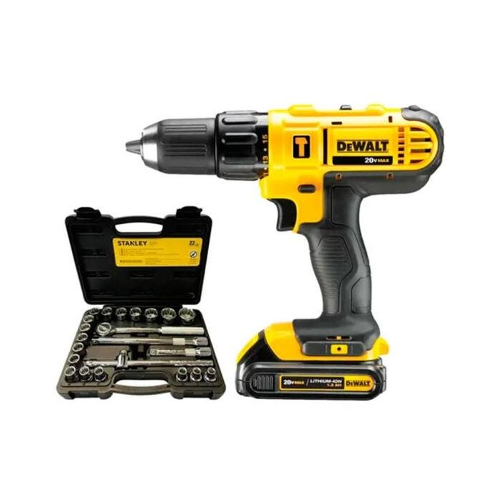 Parafusadeira Furadeira Impacto 20v Bivolt DeWalt DCD776LC1 com Jogo de Soquetes Stanley