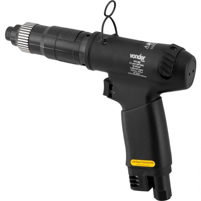 Marca: Vonder Conteúdo da embalagem: 1 Parafusadeira. Acompanha: 1 gancho para balancim e 1 chave para ajuste do torque. Destaques e diferenciais: Possui ajuste de torque, fácil acesso a mudança no sistema de reversão e silenciador. Conta com sistema de troca rápida dos bits e desligamento automático (Shut-off), garantindo maior segurança e agilidade na operação. Conta com acionamento por gatilho. Ergonômica, proporciona conforto e praticidade ao operador. Aplicações e dicas de uso: Indicada para diversas operações de aperto e desaperto de parafusos e porcas em geral. Uso industrial. Mantenha a ferramenta constantemente lubrificada e utilize sempre o regulador de pressão e o lubrificador de linha com óleo pneumático. . Detalhes Técnicos Modelo: PPV358 Consumo de ar: 2,1 pcm (pé³/min) Pressão de trabalho: 90 lbf/pol² Tipo do encaixe da parafusadeira: Sextavado - 1/4 - 6,35 mm Tipo de acionamento: Acionamento por gatilho Sistema de reversão: Sim Rotações por minuto (rpm): 1.000/min Torque: 3,5 N.m - 8,0 N.m Rosca de entrada de ar: 1/4 NPT fêmea Diâmetro da mangueira: 3/8 Aceleração transmitida nas mãos - braços do operador - ah: 0,61 m/s² Incerteza da aceleração transmitida nas mãos - braços do operador - k: 0,56 m/s² Massa aproximada (peso) (kg): 1,236 kg Garantia - E (CDC): Garantia legal: 90 dias + Garantia contratual: 3 meses (Para locadoras, garantia única e exclusiva de 90 dias) NA