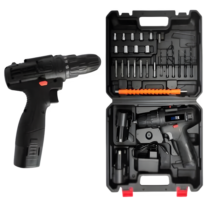 Parafusadeira Profissional 12V (LWJ-214) Excelente Parafusadeira. Ferramenta de Alta Durabilidade e com Motor de Alto desempenho. Fácil e prática de usar, possui Design compacto e empunhadura emborrachada. Ideal para Instaladores, Montadores de Móveis, Eletricistas, Carpinteiros entre outros. Benefícios da Parafusadeira Profissional 12V - Gatilho eletrônico com velocidade variável e reversível- Motor de Alto Desempenho- Compacta e com design ergonômico - Alta Durabilidade - Rotação com impacto Para serviços de construção e manutenção domésticos e profissionais. Permite parar a rotação em forma instantânea. Possui ajuste múltiplo de torque e dupla velocidade, ideal para furos com acabamento perfeito. Este produto atende 2 funções ao mesmo tempo, fixar quadros, armários, montagens de móveis. e etc. Especificações: Tensão: 12v Bateria: 1.3 Ah Velocidade de Carga: 450-1400 rpm Torque máximo: 5,5 - 3N.m Tamanho do mandril: 0,8-10mm Tempo de carregamento : 2-3 H Carregamento por fonte bivolt 110/220 Itens Inclusos: 2x Baterias 1x Fonte para carga bivolt 1x Alongador Flexível 6x Brocas de Furo 7x Pontas de Fenda 10x Bits de Parafusar 1x Maleta de transporte 1x Fonte para carregamento