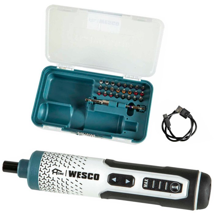 Parafusadeira Tipo Caneta À Bateria Wesco Ws2001 Home 3.6v Cabo Usb + 25 Bits + Maleta