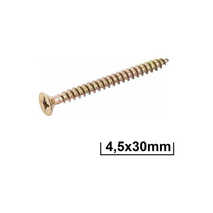 Parafuso Madeira Chipboard Cabeça Chata 4.5x30mm 500 Unidade