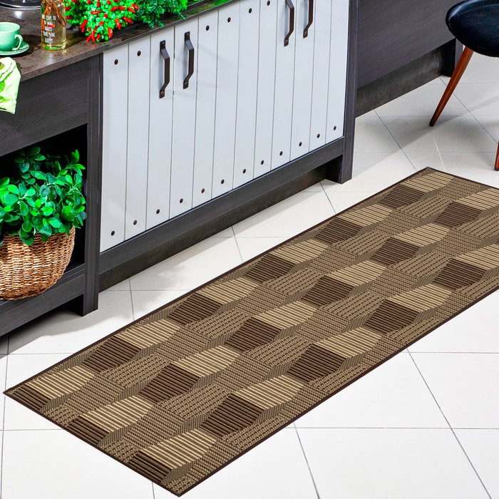 Fácil de Lavar Base Antiderrapante Perfil Baixo 1cm de Espessura Item: 1 Tapete 2,50m x 66cm Largura Composição: 87% Polipropileno / 13% Poliéster