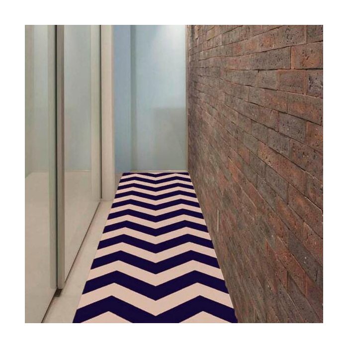 Classificação: Passadeira Chevrom Azul com Bege Casa Dona Antiderrapante 66 x 240cm