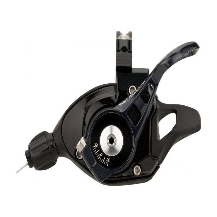 O X01-E Eagle Single Click Shifter foi especialmente projetado para uso em E-MTBs. Para estender a vida útil da corrente e do cassete e evitar defeitos, o gatilho permite apenas etapas de engrenagem individuais. Isso garante mudanças de marcha limpas em todos os momentos e evita mudanças excessivas indesejadas em trilhas difíceis. Sua tecnologia de atuação exata garante mudanças de marcha suaves e suaves em toda a gama de marchas. A alavanca do polegar é feita de alumínio e pode ser ajustada em uma faixa de + 30° a -30°. Para um cockpit organizado e a melhor ergonomia, o X01 Eagle Shifter pode ser montado com o SRAM Matchmaker ou Matchmaker X.