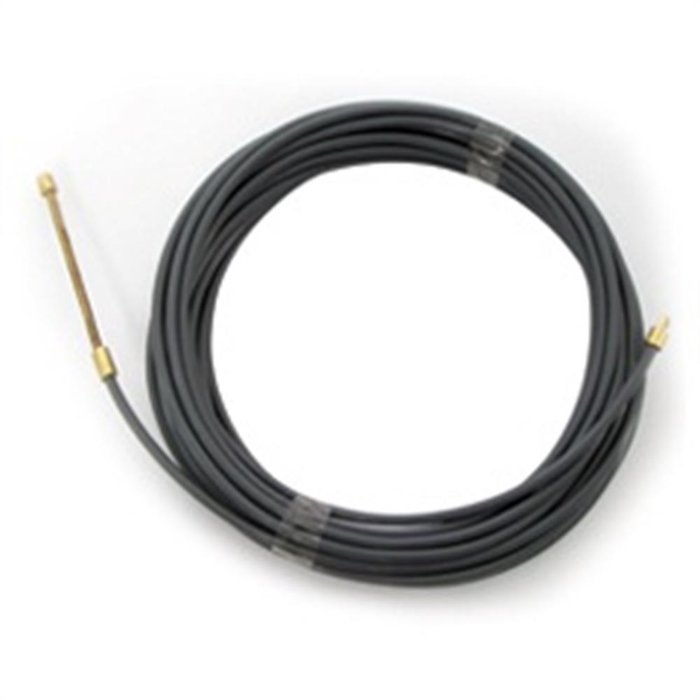"O Passafio Deslizante com 20 Metros Preto da Kitflex desliza facilmente por passagens de eletrodutos e conta com dispositivo de metal com furo na ponta que permite a amarração de fios.