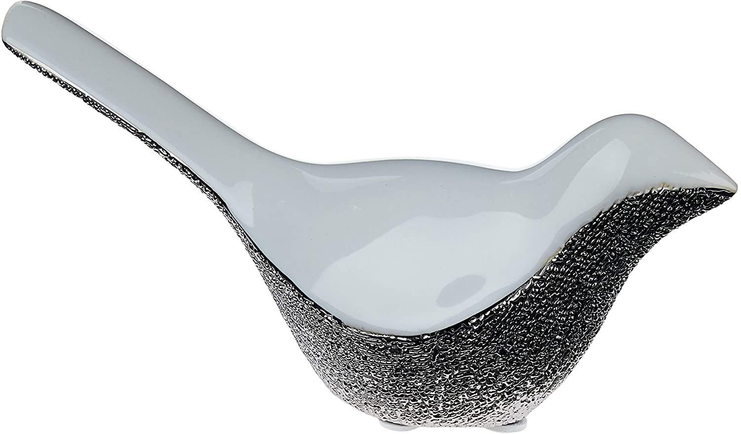 Passaro Decorativo em Cerâmica Prata Dream Adorno Para Sala PRATA