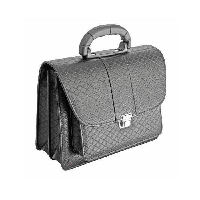Pasta Ccb Bolsa Maleta Tripla Matelasse Preta Ap R1495 Pasta voltada para o público de igreja. Alça Plástica. Cor: Preta. Tecido: Matelasse. Pasta com Repartição Tripla. Bolso interno com zíper. Pasta ideal para hinário de cordas. Confeccionada com Materiais de qualidade. Revestimento Externo em Couro Sintético. Revestimento interno em Tnt e Couro Sintético. Porta Caneta e Porta Azeiteira. Fecho de pressão Super Resistente. Fechos e pinos niquelados. Alça reforçada com pinos. Medidas: Profundidade: 12 cm. Largura: 28 cm. Altura: 22 cm.