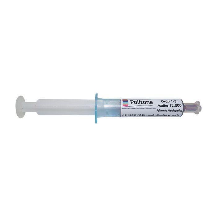 Pasta Diamantada de Alta Concentração A Pasta Diamantada de Alta Concentração Politone são de alta qualidade e possuem 11 tipos de diferentes Granas/Malhas para suprir a necessidade de um acabamento mais funcional até o espelhamento completo. Indicações Técnicas As Pastas Diamantadas Especiais de Alta Concentração de pó de diamantes importados, asseguram maior rendimento e homogeneidade no polimento/acabamento de diversas superfícies, com a alta concentração de diamantes o polidor leva muito menos tempo para atingir o acabamento desejado e rende muito mais que as comuns compensando o investimento rapidamente. As pastas tem variações da Gramatura que podem ir de 400 até a 60.000 ou malha, podendo também variar de 80 Microns até 1/2 Micron.Nossa pasta diamantada segue em seringas diferenciadas com fechamento especial que inibe a entrada de ar dentro da seringa e embolo siliconado que oferece melhor deslize e controle na hora da aplicação reduzindo o desperdício e facilitando o manuseio. Consulte a tabela para ver todas as opções e aplicações: