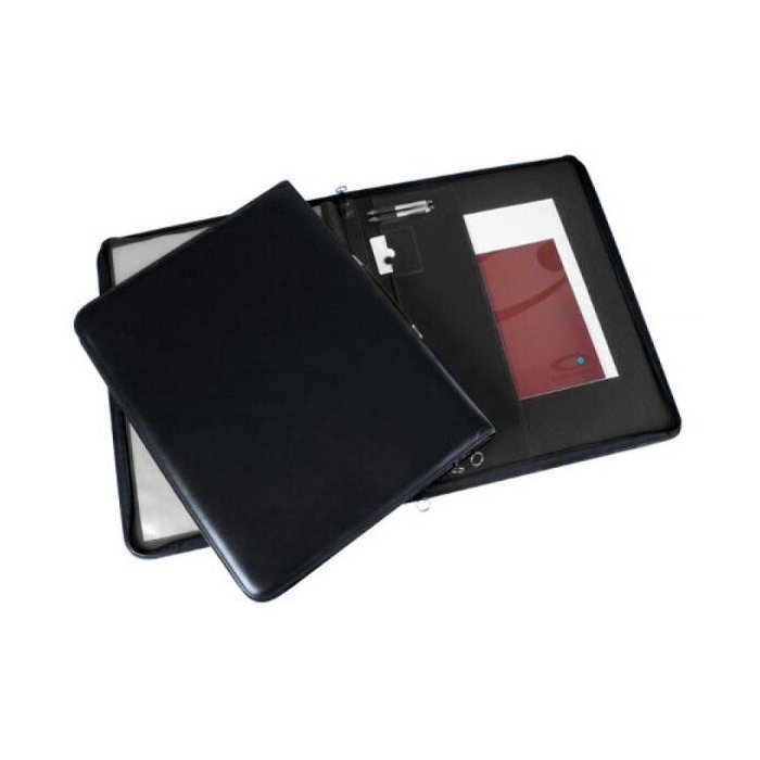 Pasta Portfólio A2 com revestimento em couro sintético, costurado, almofadado, bolsa interna com porta cartão, porta canetas, alças flexíveis e fechamento com zíper. Para Estudantes, Arquitetos e Projetistas.