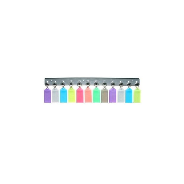 Chaveiros organizadores com suporte de 12 lugares para ser fixado na parede, incluindo 12 chaveiros coloridos.