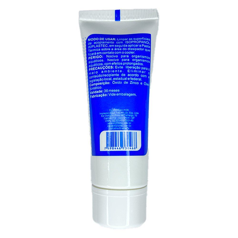| A pasta térmica Implastec 50g é conhecida por suas altas propriedades de condução térmica e eficiência em dissipação de calor. Aqui estão alguns atributos que você pode considerar | Alta Condutividade Térmica |