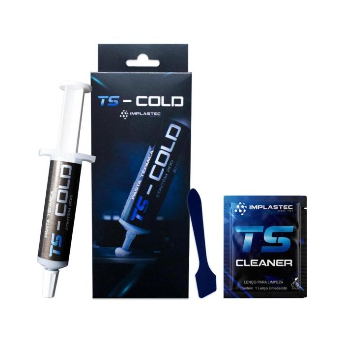 A Pasta Térmica Ts Cold busca atender aos usúarios mais exigentes do mercado de computadores de alto desempenho, consoles cada vez mais robustos e eletrônicos que possuem processadores com grande capacidade de processamento, a Implastec desenvolveu uma pasta térmica com a melhor tecnologia disponível, elaborando assim a Pasta Térmica TS-Cold. Sua elevada capacidade de conduzir calor, devido aos agentes condutores de calor de sua fórmula, faz com que a TS-Cold seja a pasta ideal para ser utilizada na montagem e manutenção de diversos eletrônicos de ponta. A escolha de um fluido de silicone especial, torna a pasta com a viscosidade perfeita para uma aplicação rápida e fácil, além de garantir um longo tempo de vida útil, graças à sua excelente estabilidade térmica. Manuseio: Limpe a superfície com Álcool Isopropílico Implastec, ou o lenço umedecido TS Cleaner. Aplique a TS – Cold sobre o processador ou componente. Com uma espátula, espalhe o produto sobre toda a área formando uma fina camada. Aplicação:Pasta Térmica Ts Cold foi desenvolvida com o objetivo de ser aplicada em CPUs com alta capacidade de processamento, Placas de vídeo modernas, vídeo games de todas as gerações, computadores que utilizam softwares avançados, servidores e qualquer outra aplicação onde uma pasta térmica de excelente qualidade é exigida. Peso:20gPesquisa:pasta termica|pasta implastec|implastec|ts cold