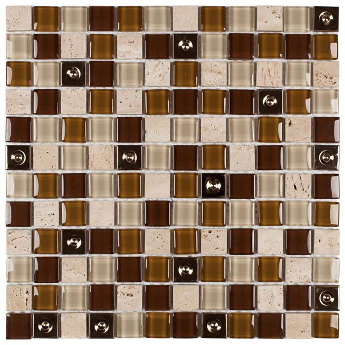 Pastilha de Marmore e Inox de 30cm X 30cm Rende Glass Mosaic Marrom/Claro/Escuro
