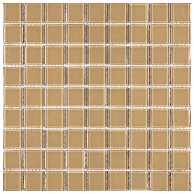 Pastilha de Vidro Cristal de 29cm X 29cm Rende Glass Mosaic Bege Claro