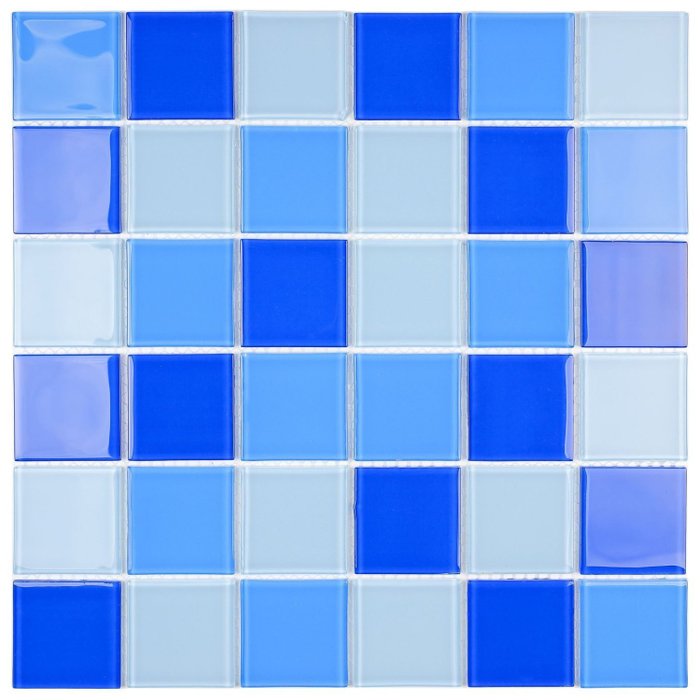 Pastilha de Vidro Cristal de 29cm X 29cm Rende Glass Mosaic Azul Claro/Médio/Escuro